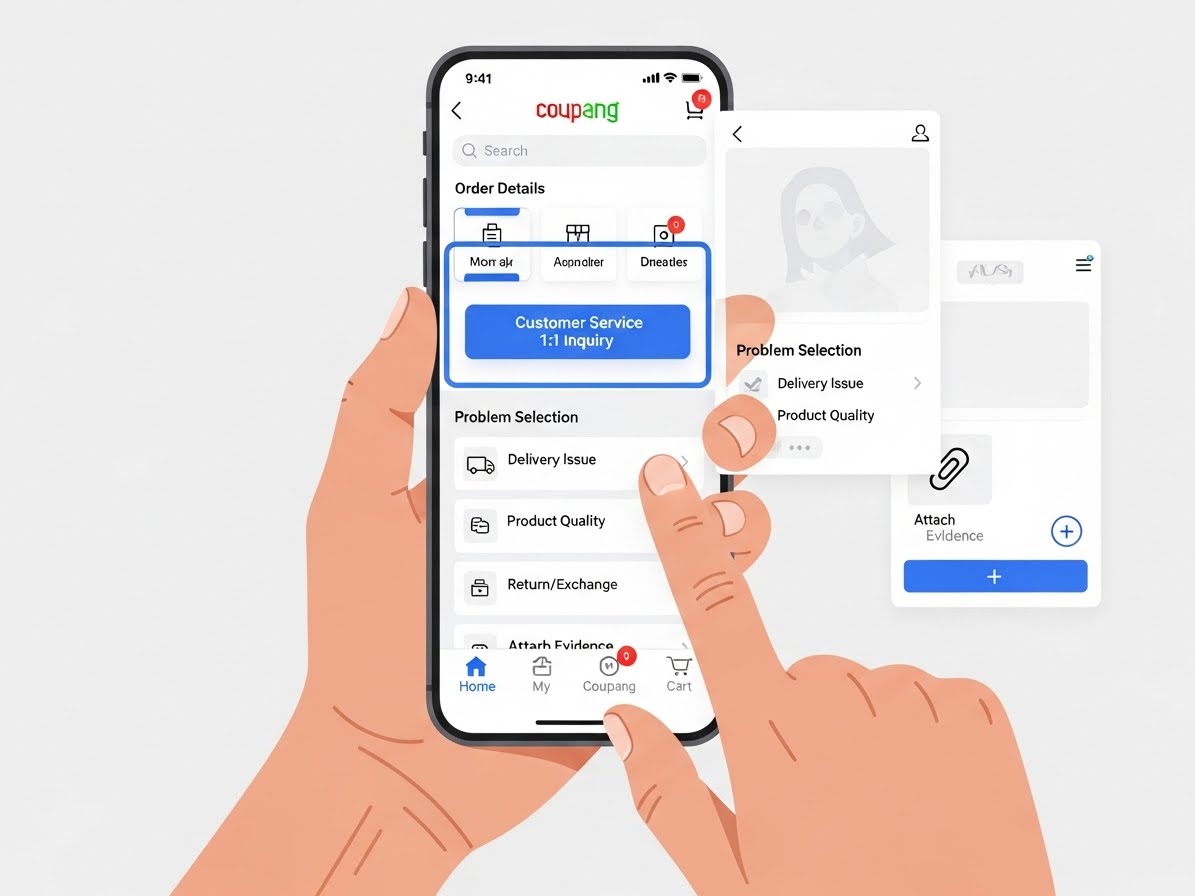 - 온라인 1:1 문의: 쿠팡 앱 또는 웹사이트 로그인 후 '마이쿠팡' > '고객센터' > '1:1 문의'로 접속합니다. 해당 주문 건을 선택하고 문제 유형을 선택한 후, 준비된 증빙 자료와 함께 상세 내용을 작성합니다.